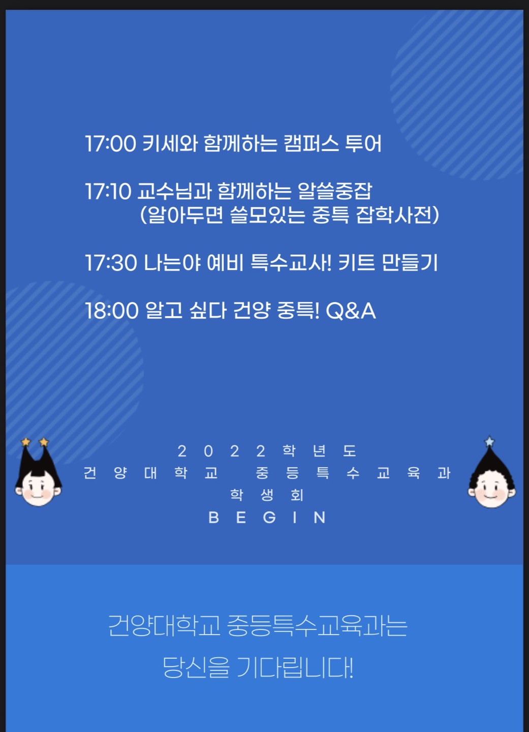 우리 학과에 대해 궁금한 것이 있는 모든 이를 위한 건양대학교 중등특수교육과 학과 설명회를 온라인으로 개최합니다. 많은 참여 부탁드립니다.