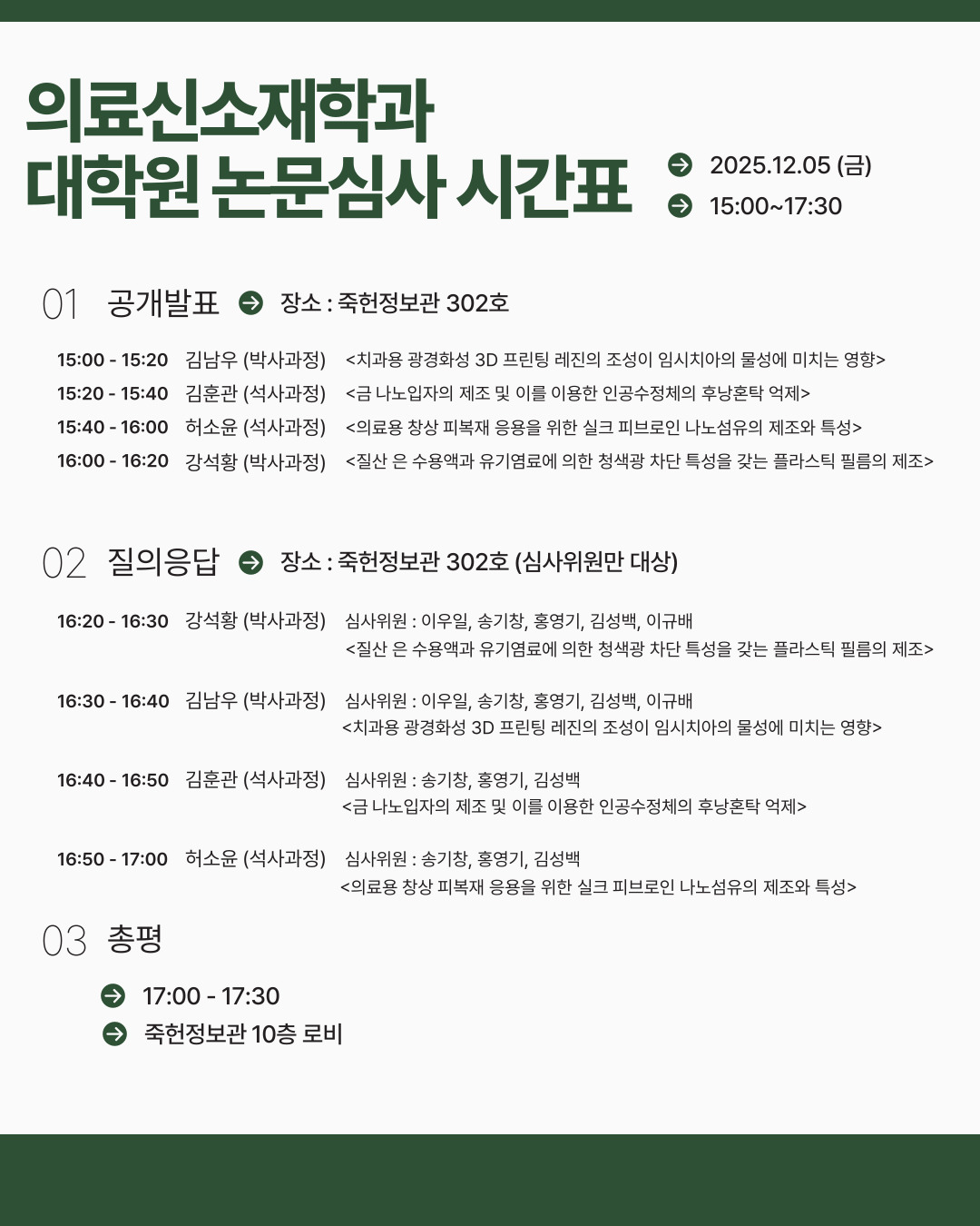 의료신소재학과 대학원학위논문심사 안내 글의 상세내용