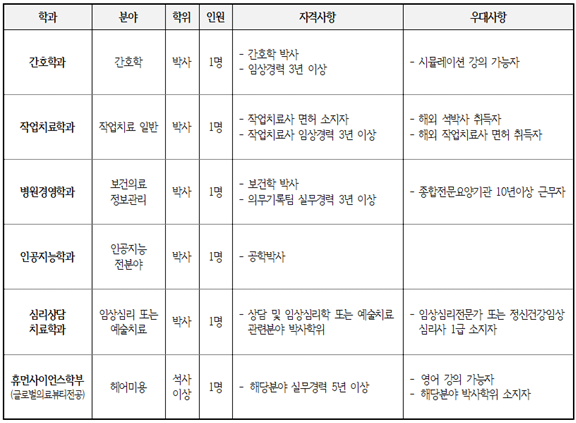 3. 지원구분 : 첨부한 공고문 및 서식 파일을 확인해 주시기 바랍니다. 4. 서류접수 이메일 주소 : kyinsa@konyang.ac.kr